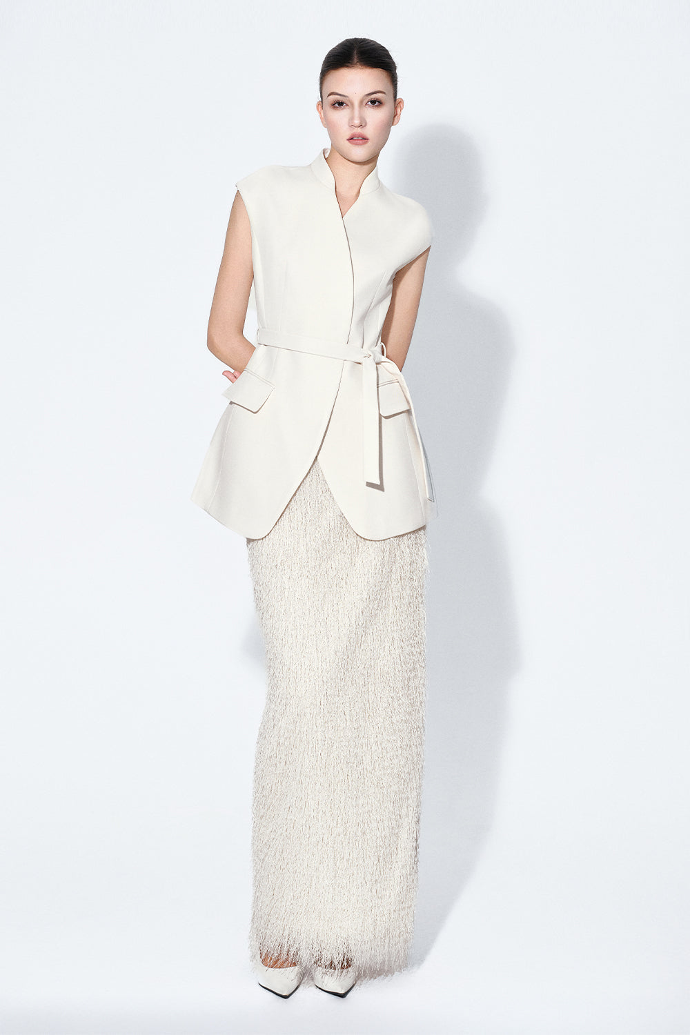 Elevate your wardrobe with this straight silhouette skirt, crafted from luxurious faux fur and adorned with dynamic fringe embellishments. Perfect for chic evenings out, creative events, or any occasion that calls for bold sophistication.