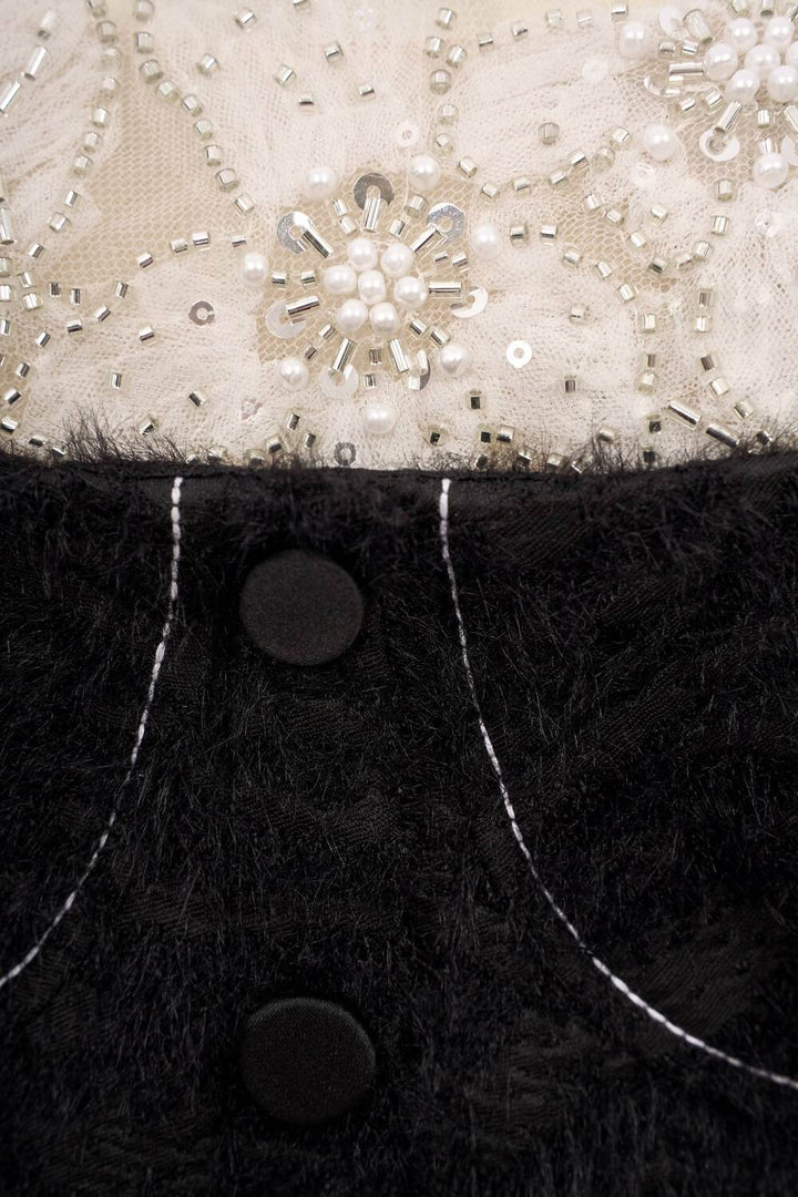 | Special Features | Chest cup, Beaded lace mesh floral on the chest and straps, Fur tweed effect on the surface, Buttons row, Faux flap pockets on the side |