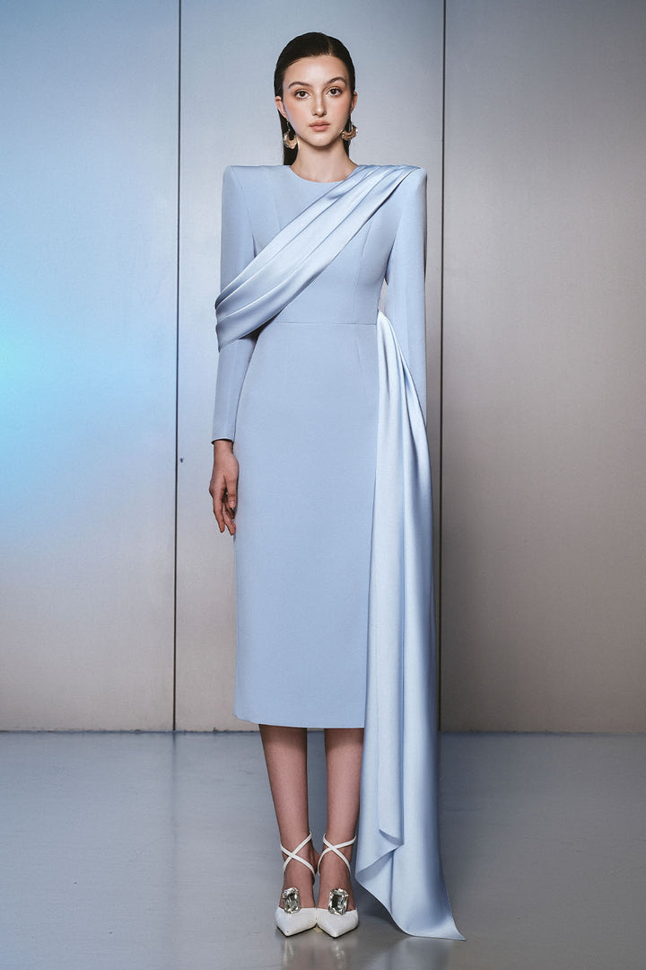 This dress features a stunning square shoulder design, highlighting your silhouette. The extended flap adds an elegant touch, while the cotton silk material provides comfort and style. Perfect for any occasion, this dress is a must-have for any fashion-forward individual.