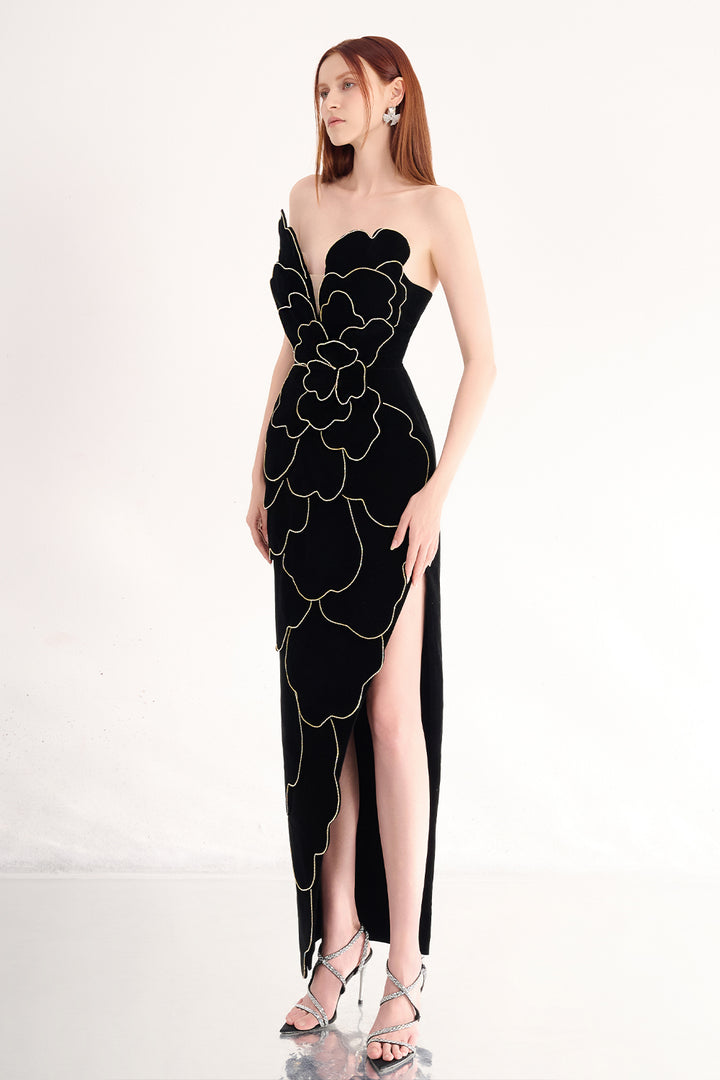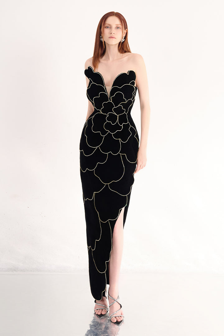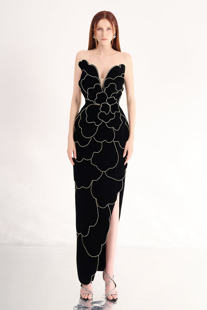 Baylor Pegged Sweetheart Neck Velvet Maxi Dress