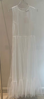 Experience refined elegance with this A-line midi dress, crafted from delicate tulle and detailed with expert gathering. The design creates timeless sophistication, making it ideal for weddings, cocktail parties, or upscale events.