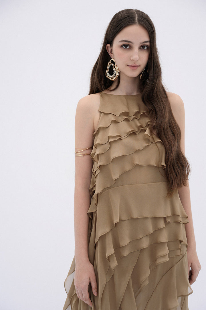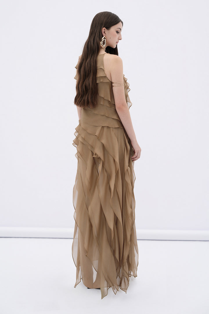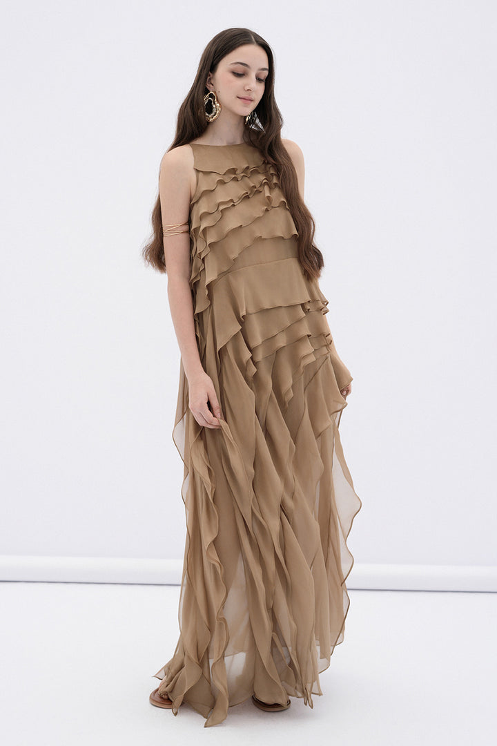Brune Straight Ruffle Layer Chiffon Maxi Dress