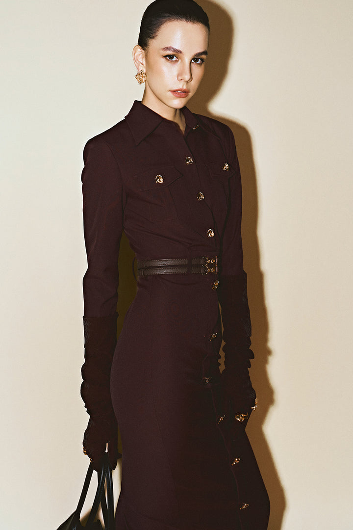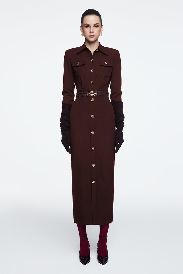 Expertly tailored for a modern silhouette, this sheath midi dress boasts a classic collared neck, regular sleeves, and premium cotton fabric. Button embellishments lend a refined finish. Ideal for professional events, casual gatherings, or daytime outings.