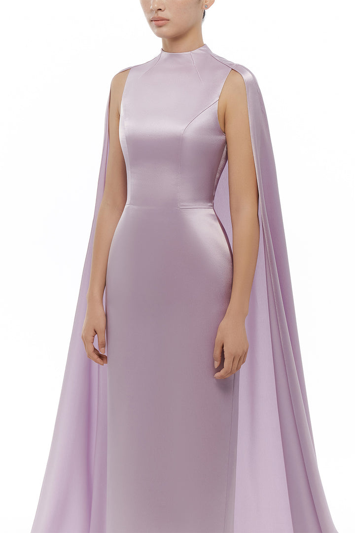 Effortlessly elevate your style with our elegant dress. Featuring a sophisticated mock neck and a trendy cape, this dress is both chic and versatile. Perfect for any occasion, this dress will make you stand out in a crowd.