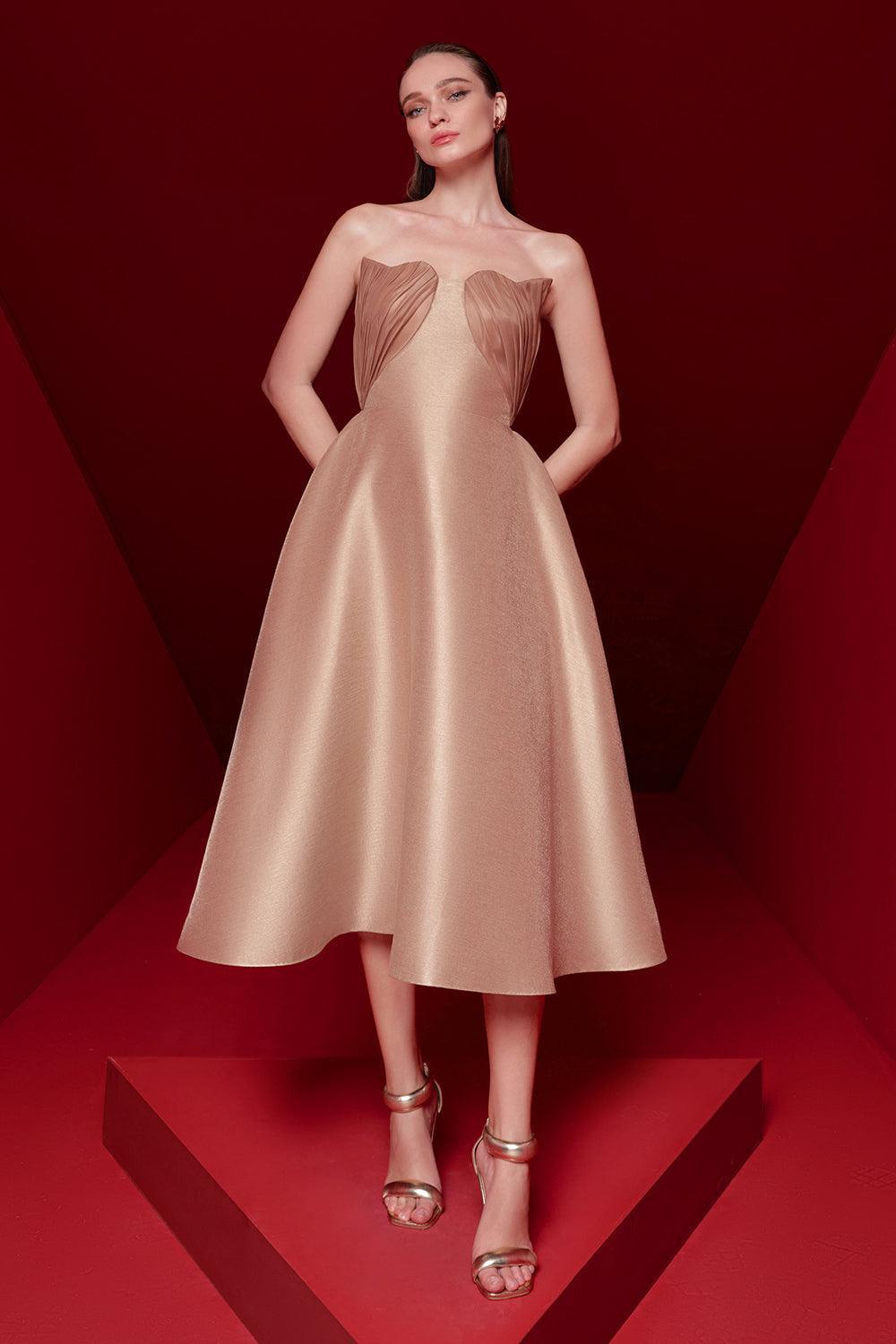 Esme Fit and Flare Sleeveless Taffeta Midi Dress