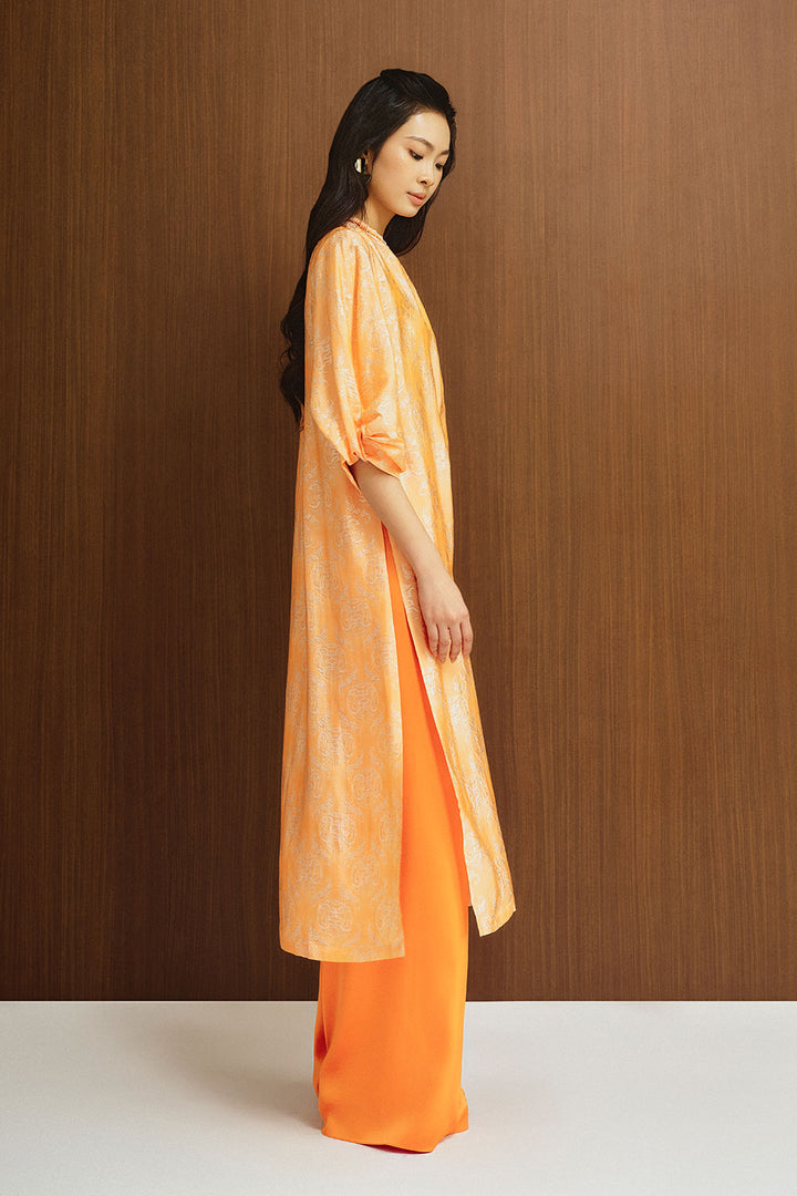 Giai Ky Straight Puffy Sleeved Silk Calf Length Ao Dai