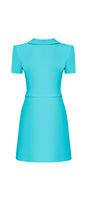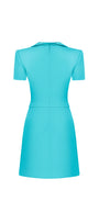 The dress combines expert tailoring with luxurious silk crepe fabric. Its sleek sheath silhouette and sophisticated high neck create a refined, polished look. Designed for those who value precision and elegance, this mini dress delivers timeless style with a modern edge.