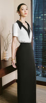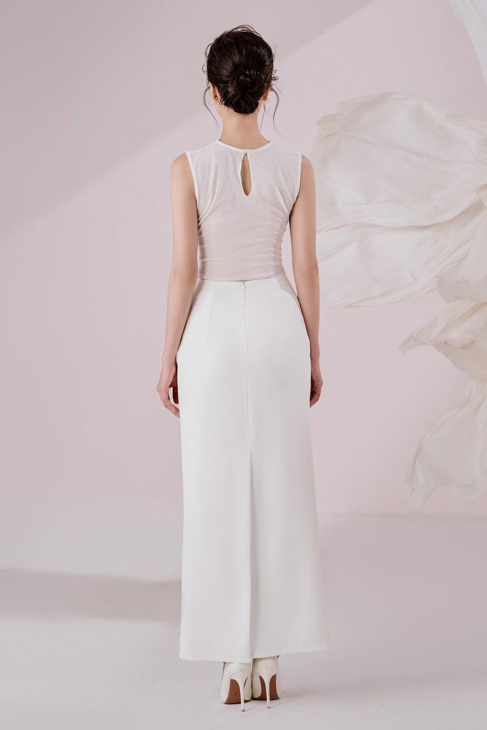 Irene Straight Back Slit Twill Ankle Length Skirt