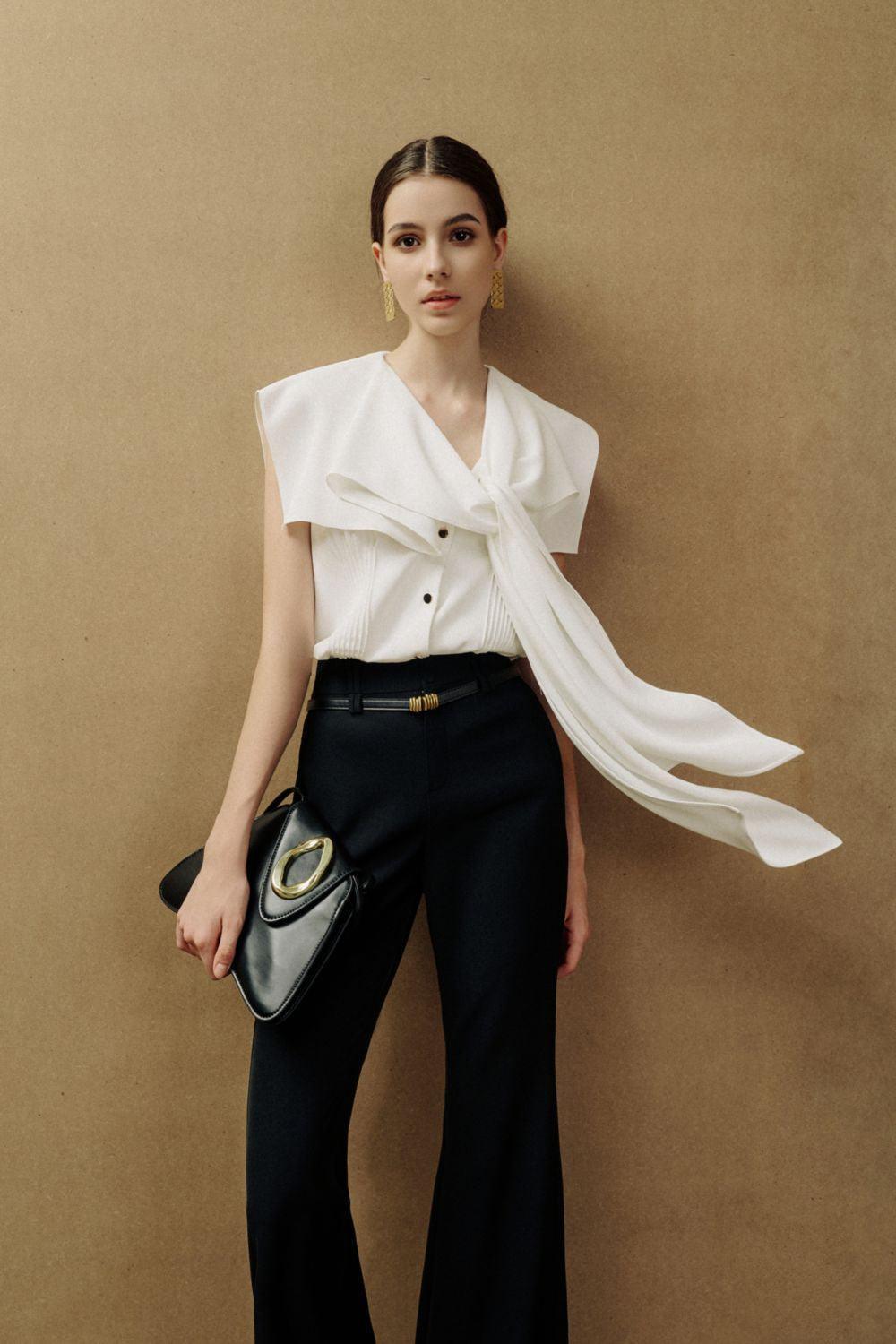 Pleated on both sides, Layered on the front of sailor neck with tie