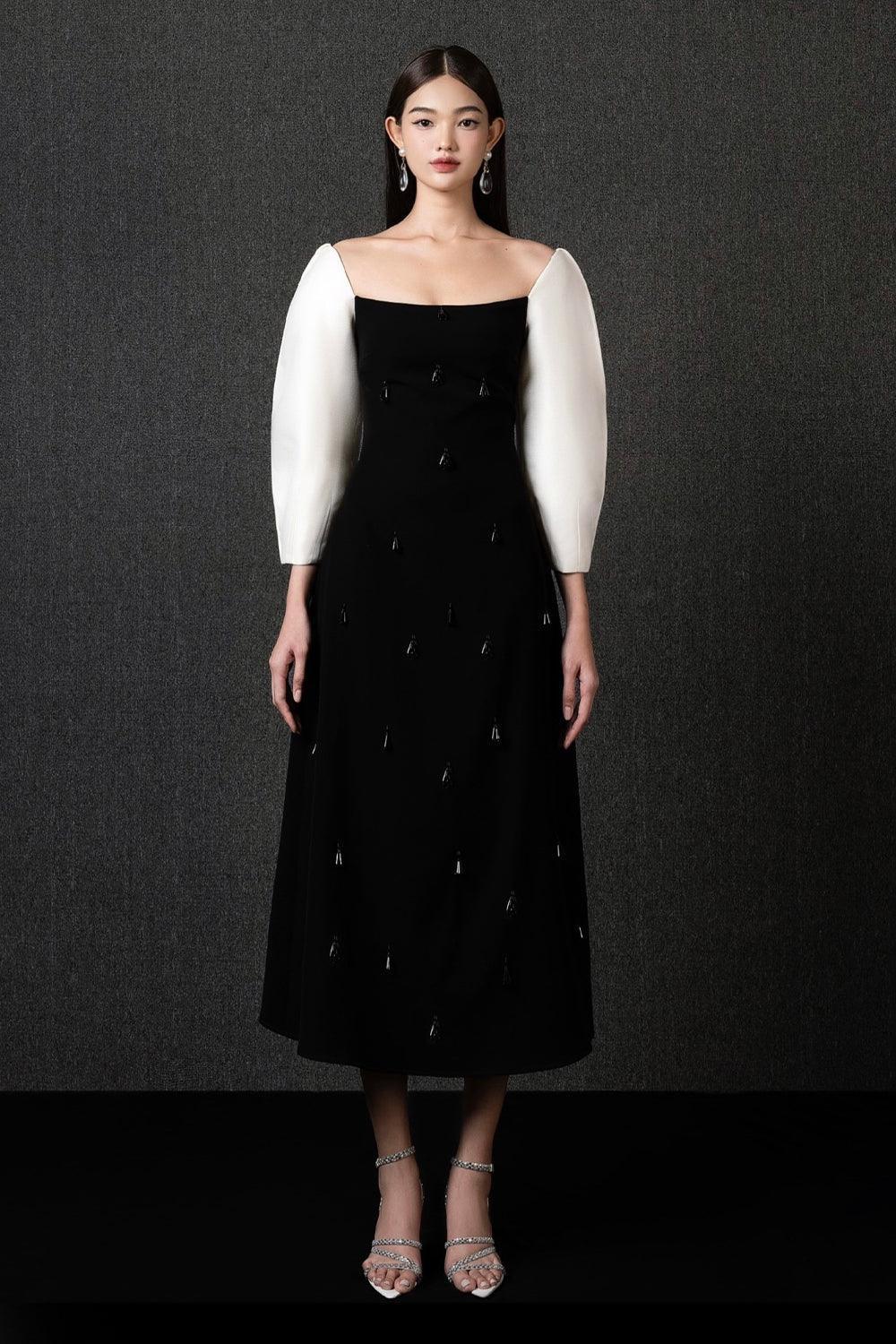 Jasper A-line Puffy Sleeved Polycotton Midi Dress