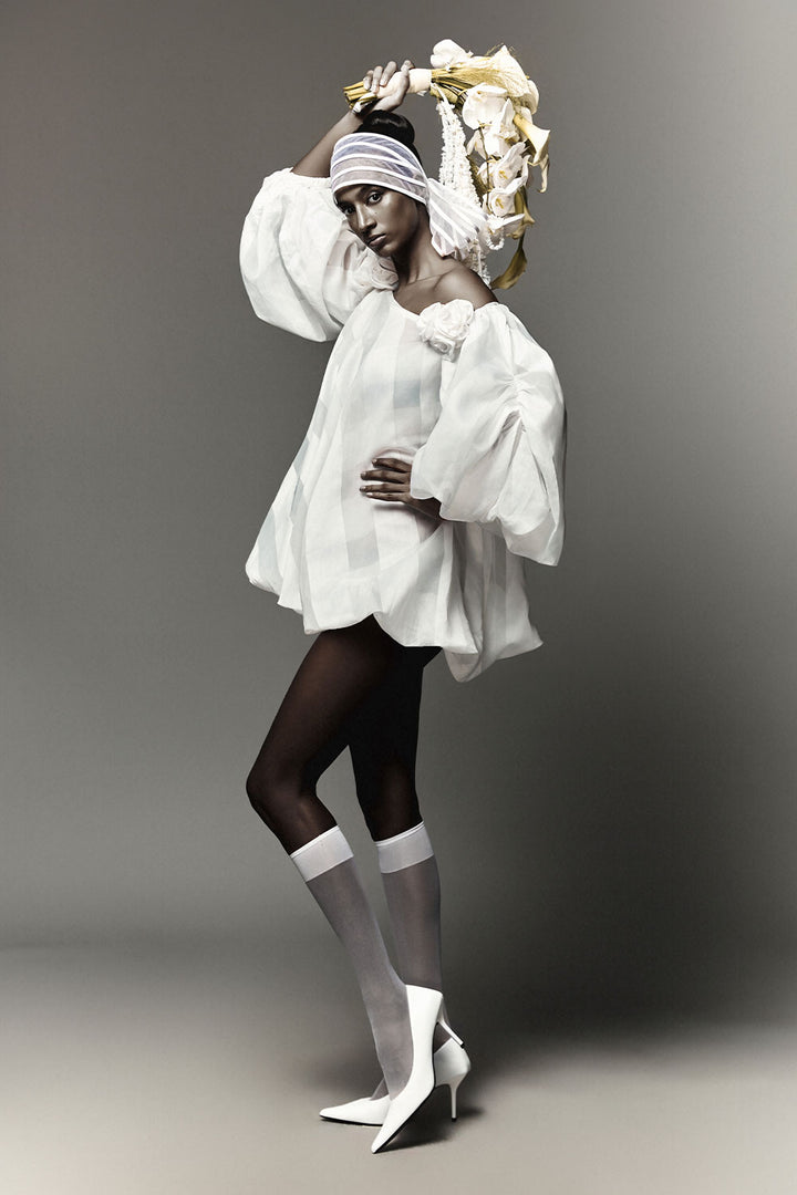 This top features puffy sleeves and a trapezoid shape, creating a unique and eye-catching silhouette. Made from high-quality organza voile fabric, this top is lightweight and breathable, perfect for any occasion. Elevate your style with this elegant and versatile piece.