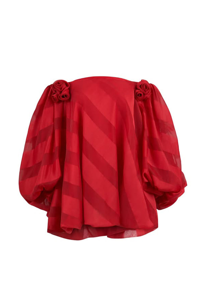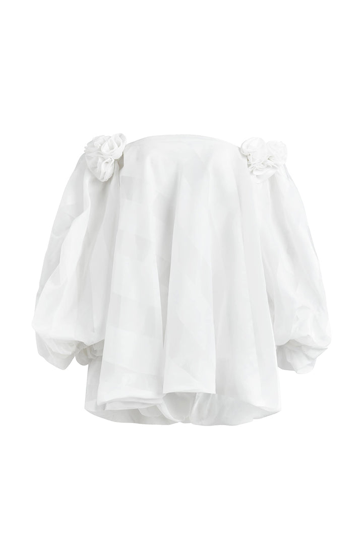 Jovie Trapezoid Puffy Sleeved Organza Voile Top
