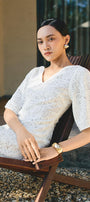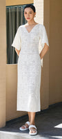 Expertly crafted, the dress is a perfect combination of style and comfort. The sheath silhouette and V-neck design flatter the figure, while the delicate cotton lace adds a touch of elegance. A must-have for any wardrobe, this dress is versatile and timeless.