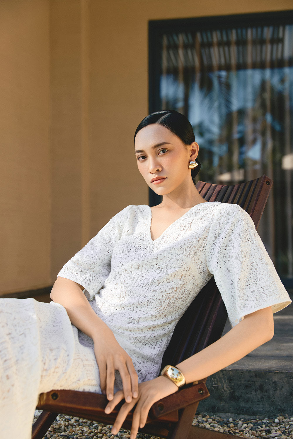 Khaleesi Sheath V-Neck Cotton Lace Midi Dress