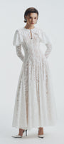 Lavina A-line Ruffle Sleeved Lace Ankle Length Dress