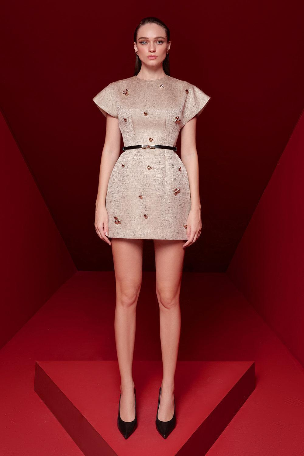 Lila A-line Round Neck Brocade Mini Dress