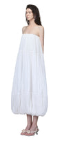 Elevate your wardrobe with this midi dress featuring a statement bubble silhouette, straight-across neckline, and refined shirring detail. Expertly tailored for a sophisticated look, this dress transitions seamlessly from cocktail parties to elegant dinners and special occasions.