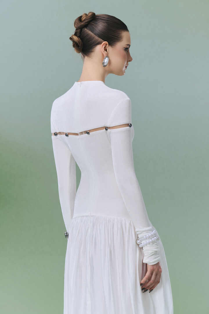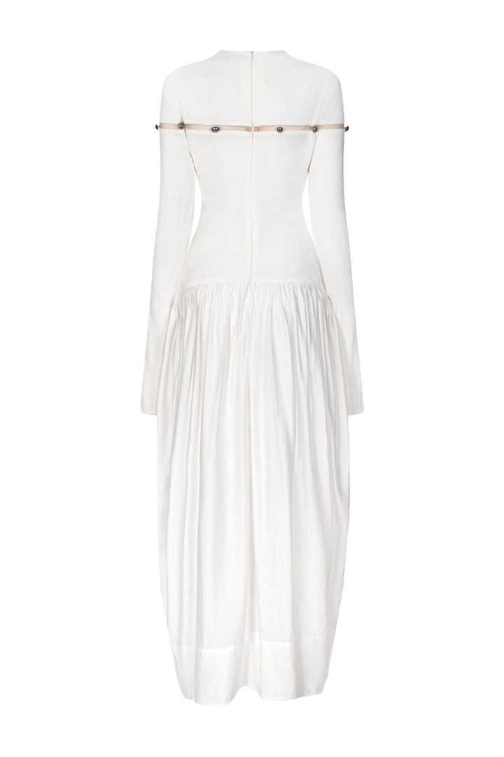 Expertly crafted from spandex for a sleek sheath silhouette, this midi dress features a classic round neck, regular sleeves, and elegant gathering details. Button embellishments add a refined touch. Perfect for work events, semi-formal gatherings, or dinner parties.