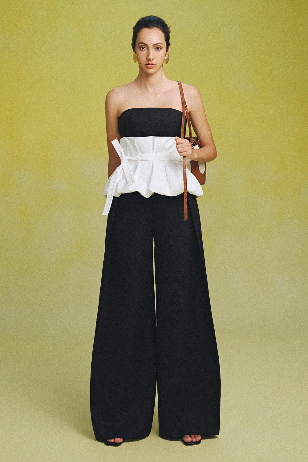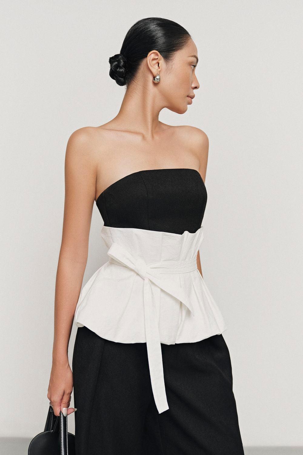 Minh Peplum Straight Across Neck Velvet Linen Top