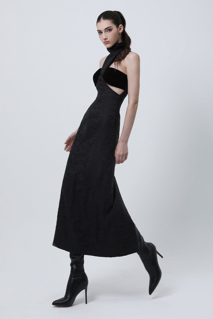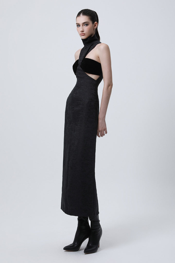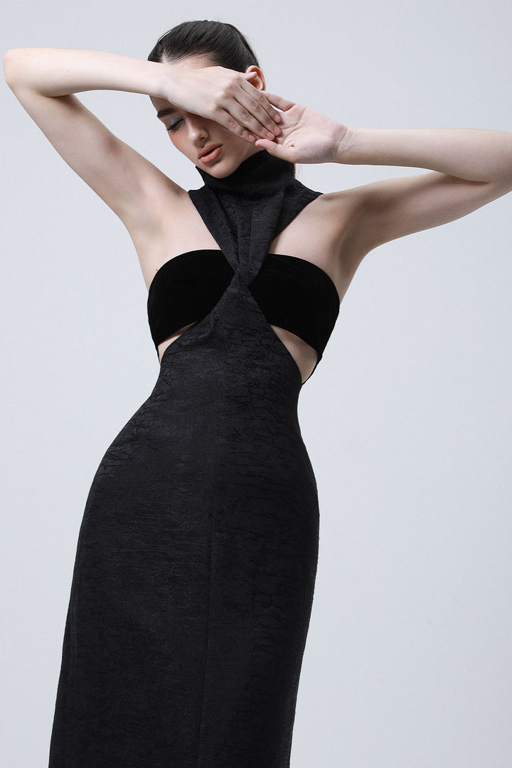 | Special Features | High neck with twisted design, Velvet bralette, High slit back, Add-in chest pad, Dart line along the dress |
