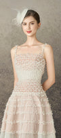 Special Features: Spaghetti strap, Small bows around the bodice, Beige cream lining, Sheer lower skirt