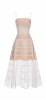 Nyelle A-line Spaghetti Strap Mesh Lace Calf Length Dress