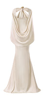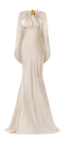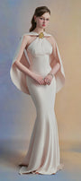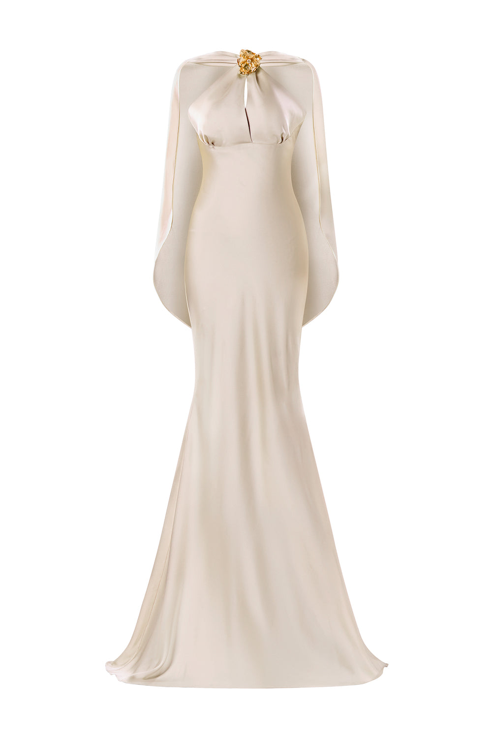 Oravie Mermaid Cape Shoulder Satin Floor Length Dress