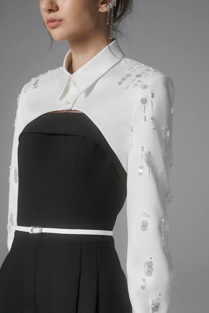 Perky Cropped Collared Neck Silk Blend Top