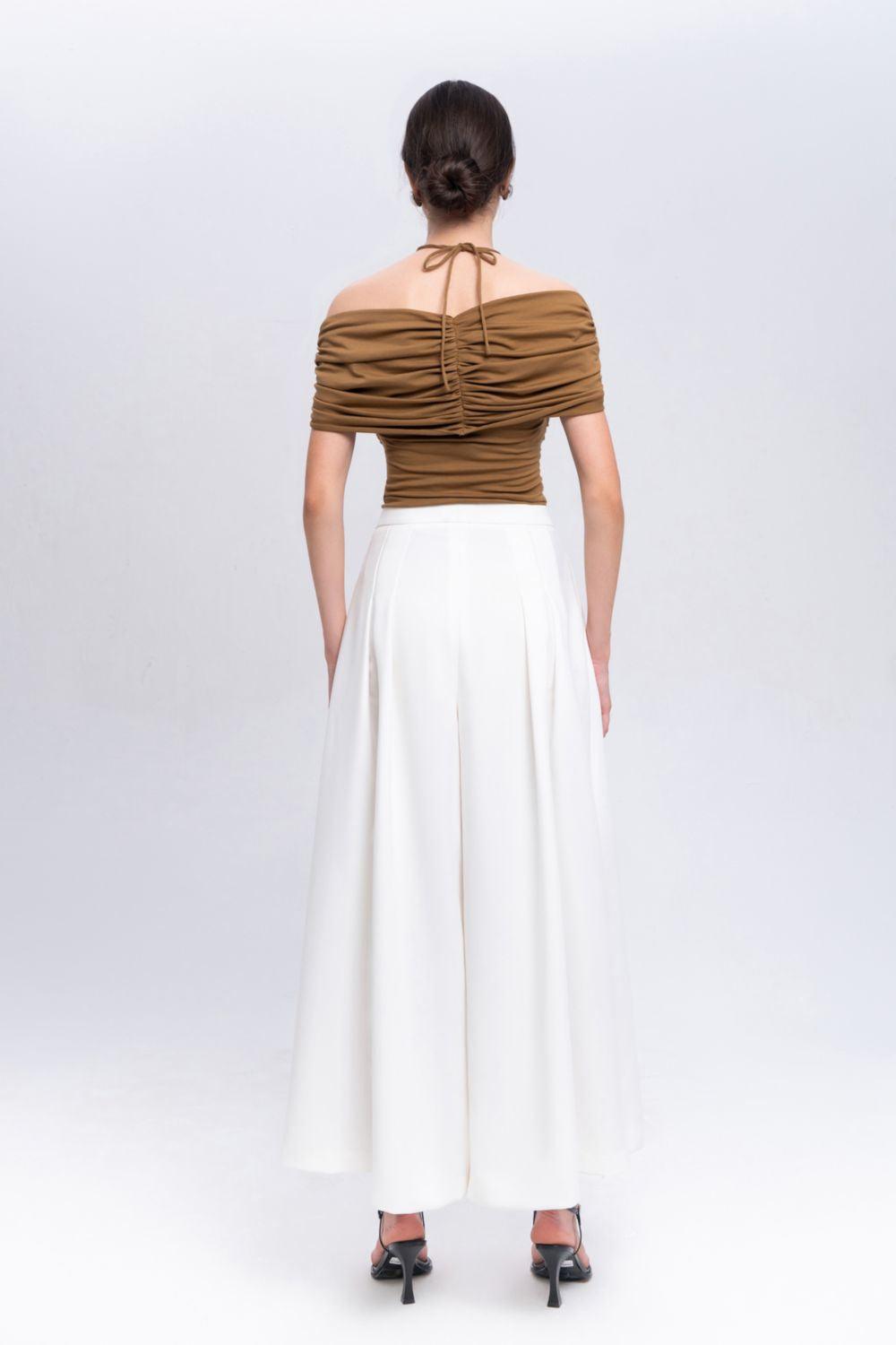 Experience the height of luxury with our top. Crafted from a blend of soft cotton and stretchy spandex, this top hugs your body in all the right places. The elegant halter neck design adds a touch of sophistication, making it the perfect addition to your wardrobe.