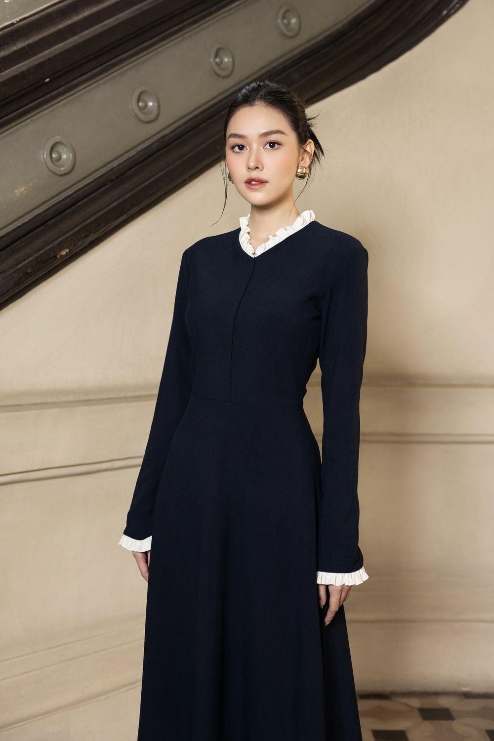 Rylee A-line Long Sleeved Polycotton Midi Dress