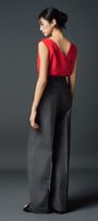 Asymmetric cowl neck, V-neck at the back