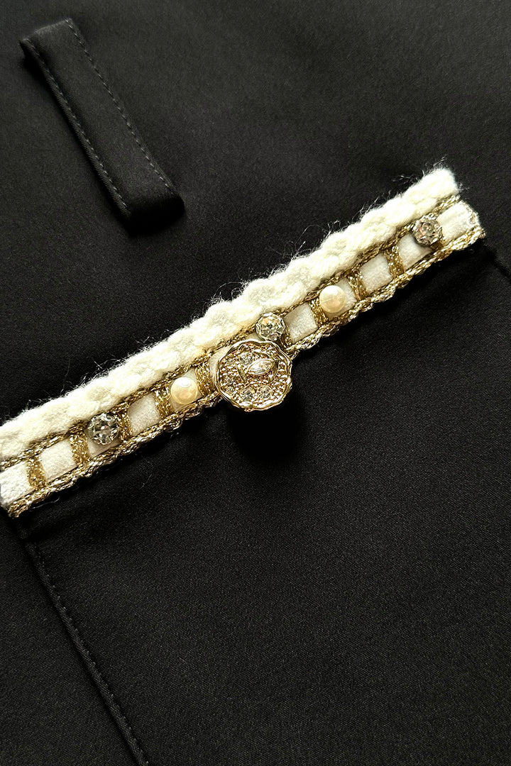 Experience refined style with this sheath cotton mini dress, featuring a classic round neck, regular sleeves, and exquisite button and rhinestone embellishments. Perfect for cocktail parties, date nights, or chic gatherings.