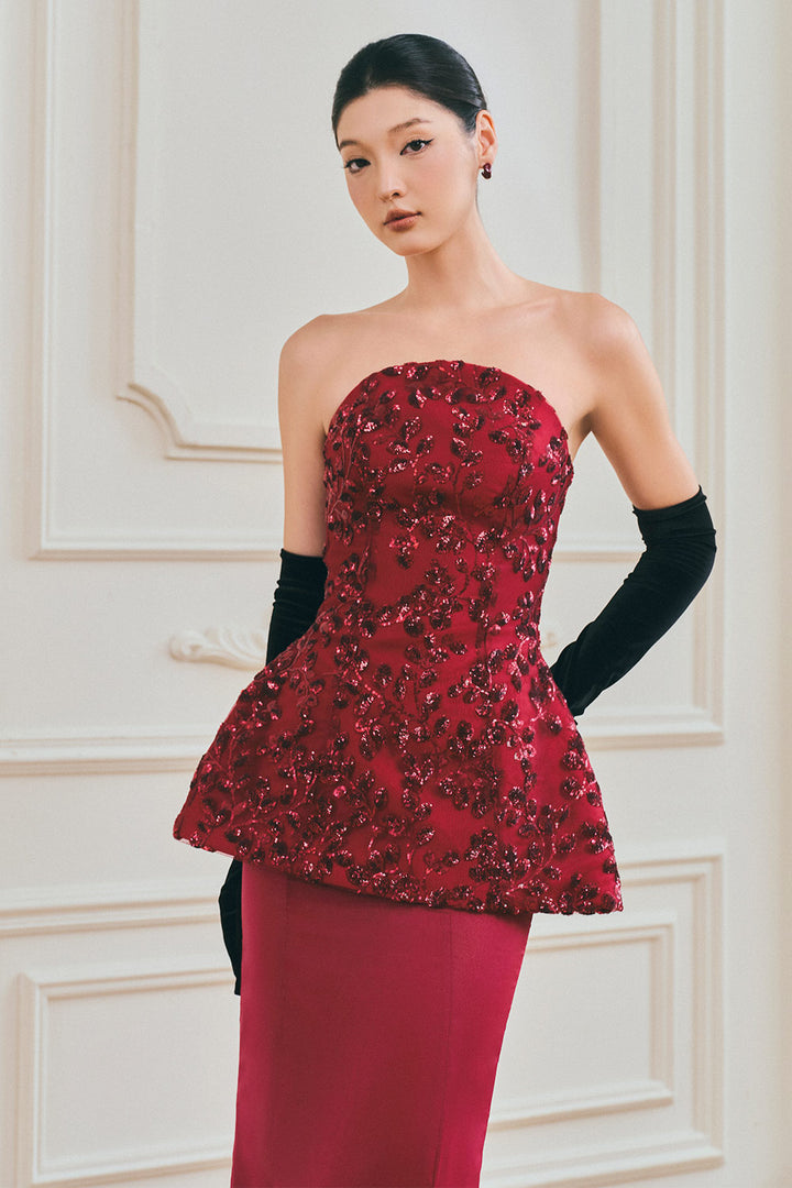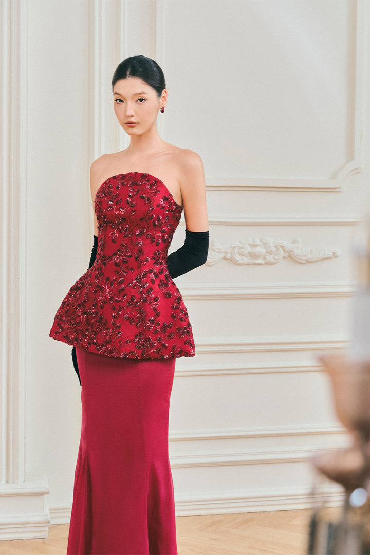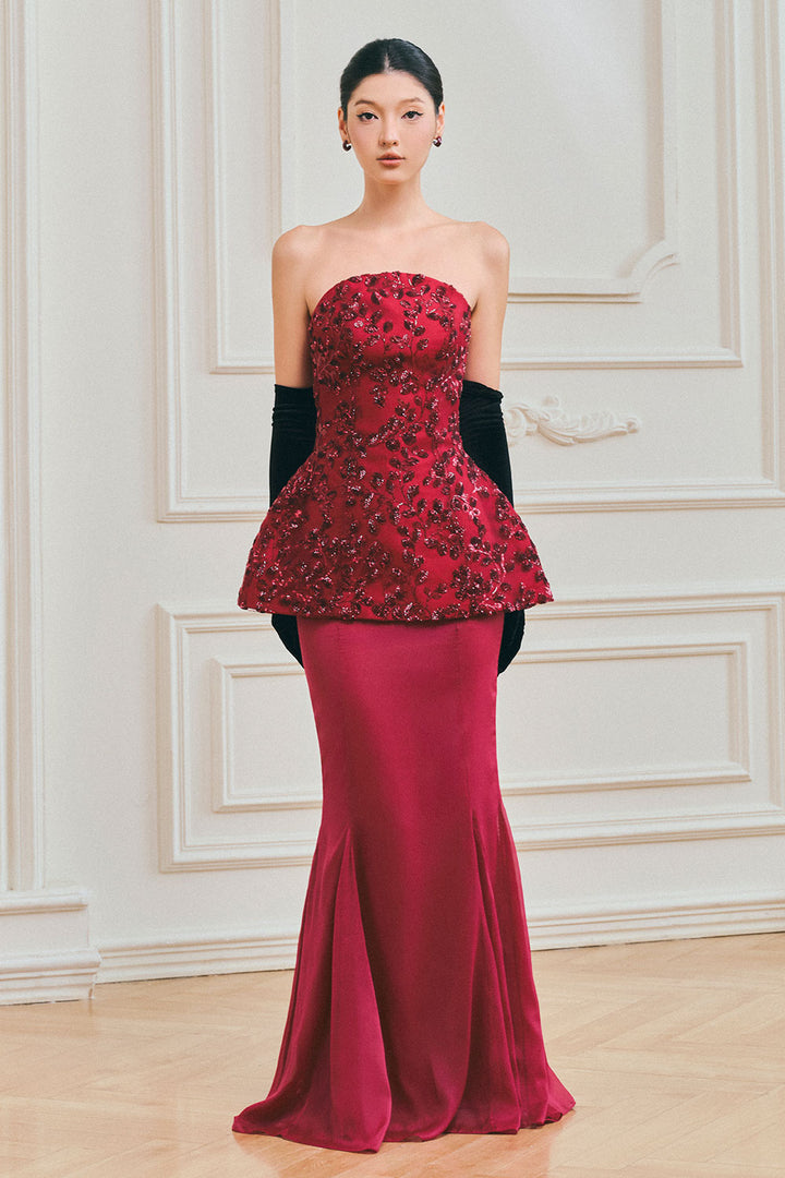 Solène Peplum Curved Neck Taffeta Maxi Set