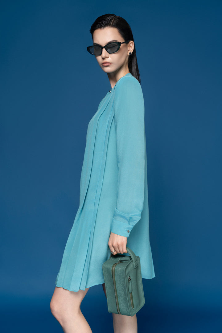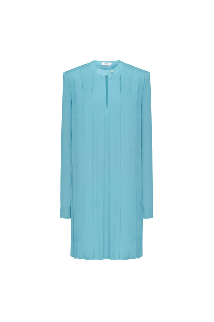 The dress exemplifies expert design with its delicate silk chiffon fabric and clean, straight silhouette. Featuring a timeless round neckline, this mini dress offers effortless elegance paired with lightweight comfort. Perfect for refined occasions, it embodies subtle sophistication and expert tailoring.