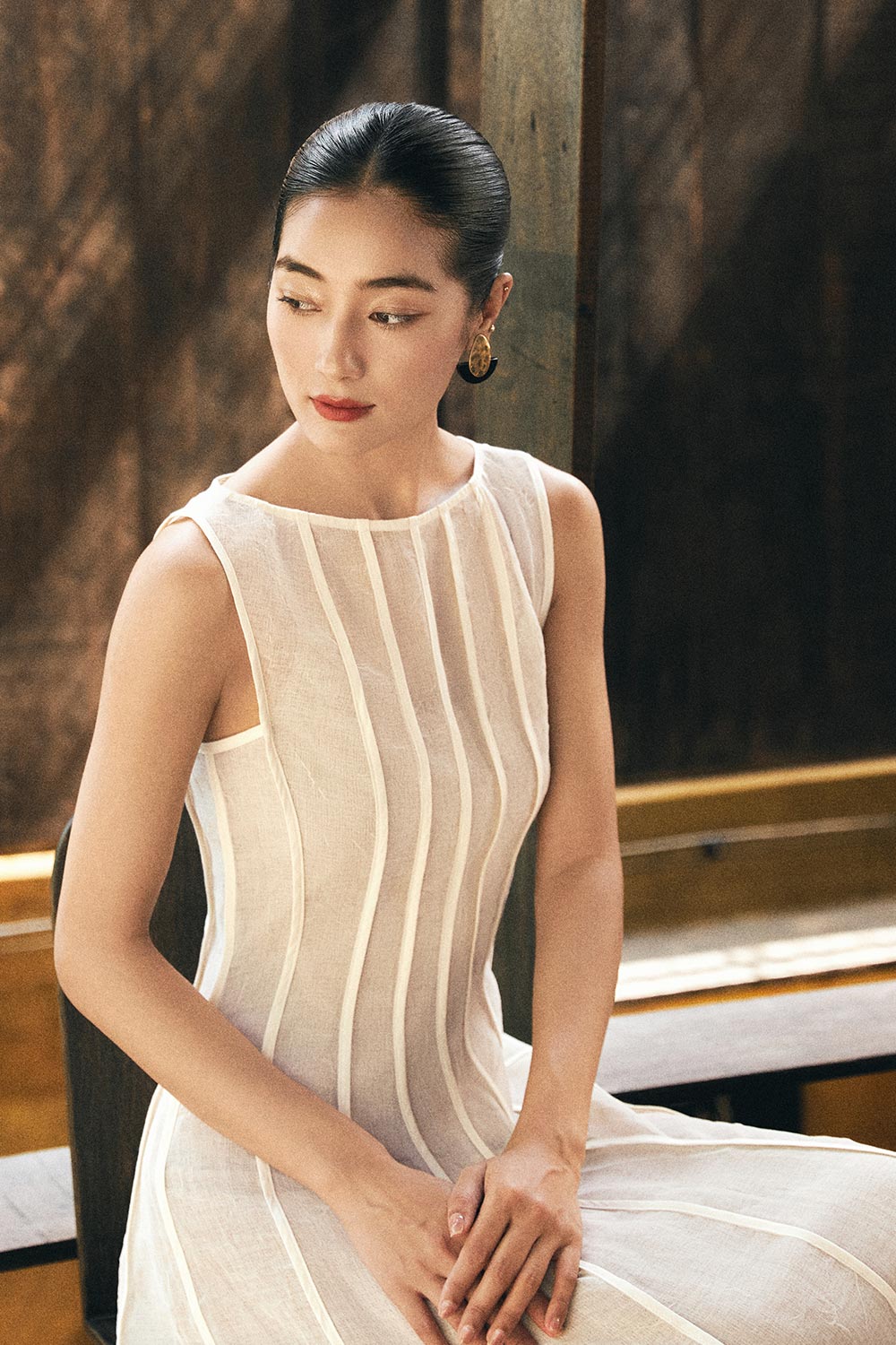 Include spandex cotton dress lining, See-through design, Ribbed lines along the dress