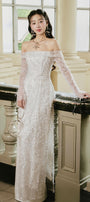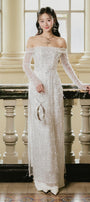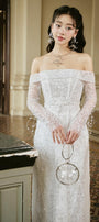 Minh Chau Sheath Off-Shoulder Lace Midi Ao Dai