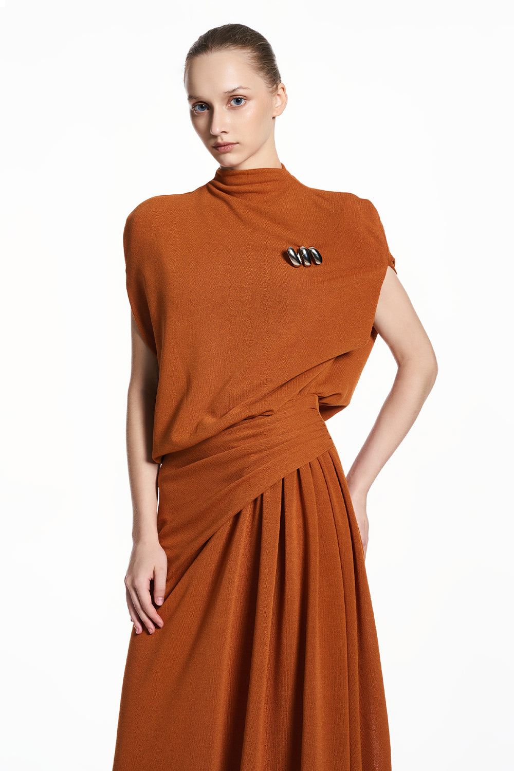 Lunae High Neck Draped Maxi Dress