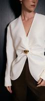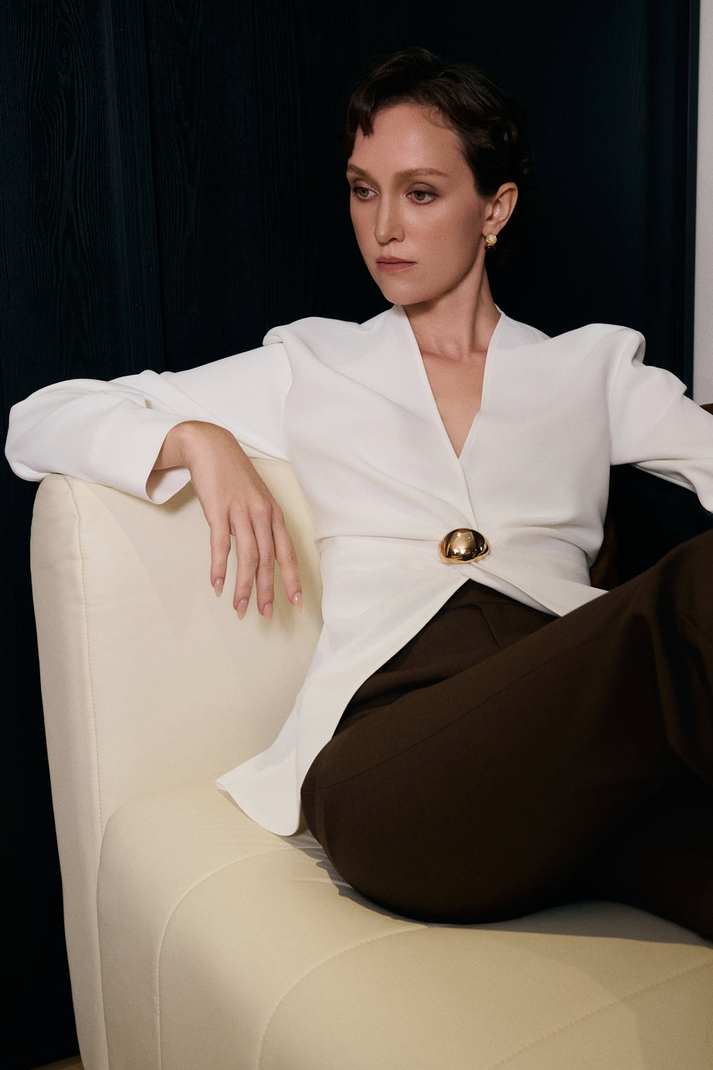 Experience refined style with this straight-silhouette silk shirt, featuring a classic V-neck, regular sleeves, and elegant button embellishments. The high-quality craftsmanship makes it ideal for formal events, business meetings, or upscale social gatherings.