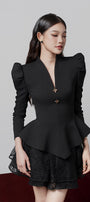 Florence Peplum V-Neck Cotton Twill Top