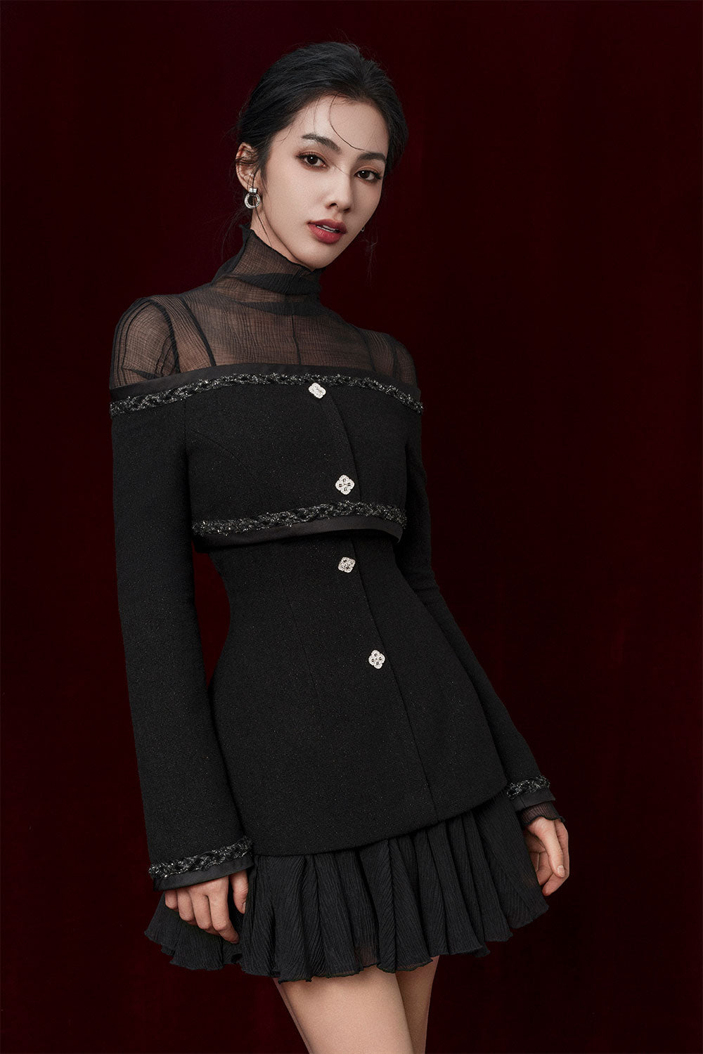 This stunning dress features an A-line silhouette and long sleeves, perfect for any occasion. Crafted from lightweight voile, this dress offers both style and comfort. Add it to your collection for a timeless and chic look.