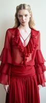 Elevate your style with the set. This daring ensemble features a flowing A-line silhouette with a charming ruffle collar that adds a touch of bold elegance. The drop-waist design enhances your figure, while the lightweight organza voile fabric offers a delicate, ethereal feel, perfect for making a statement w herever you go. Embrace sophistication with an edge in this unforgettable set.