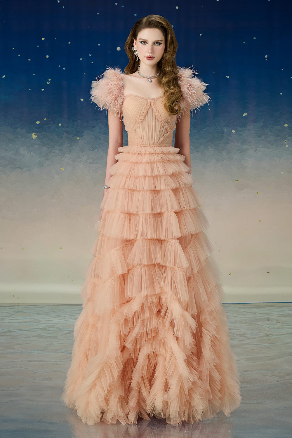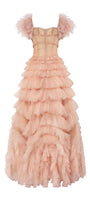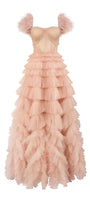 Lyrae Tiered Gathered Mesh Floor Length Dress