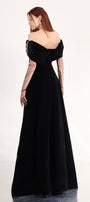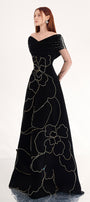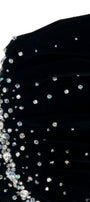 Special Features: Draped off-shoulder design with crystals, Attached rhinestone as petals shape, Sheer gloves with bead