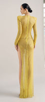 Special Features: Padded shoulder, Stones along hemline, See-through bottom design, High side slit
