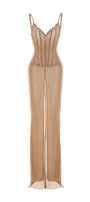 Caroline Slit Stone Mesh Maxi Dress