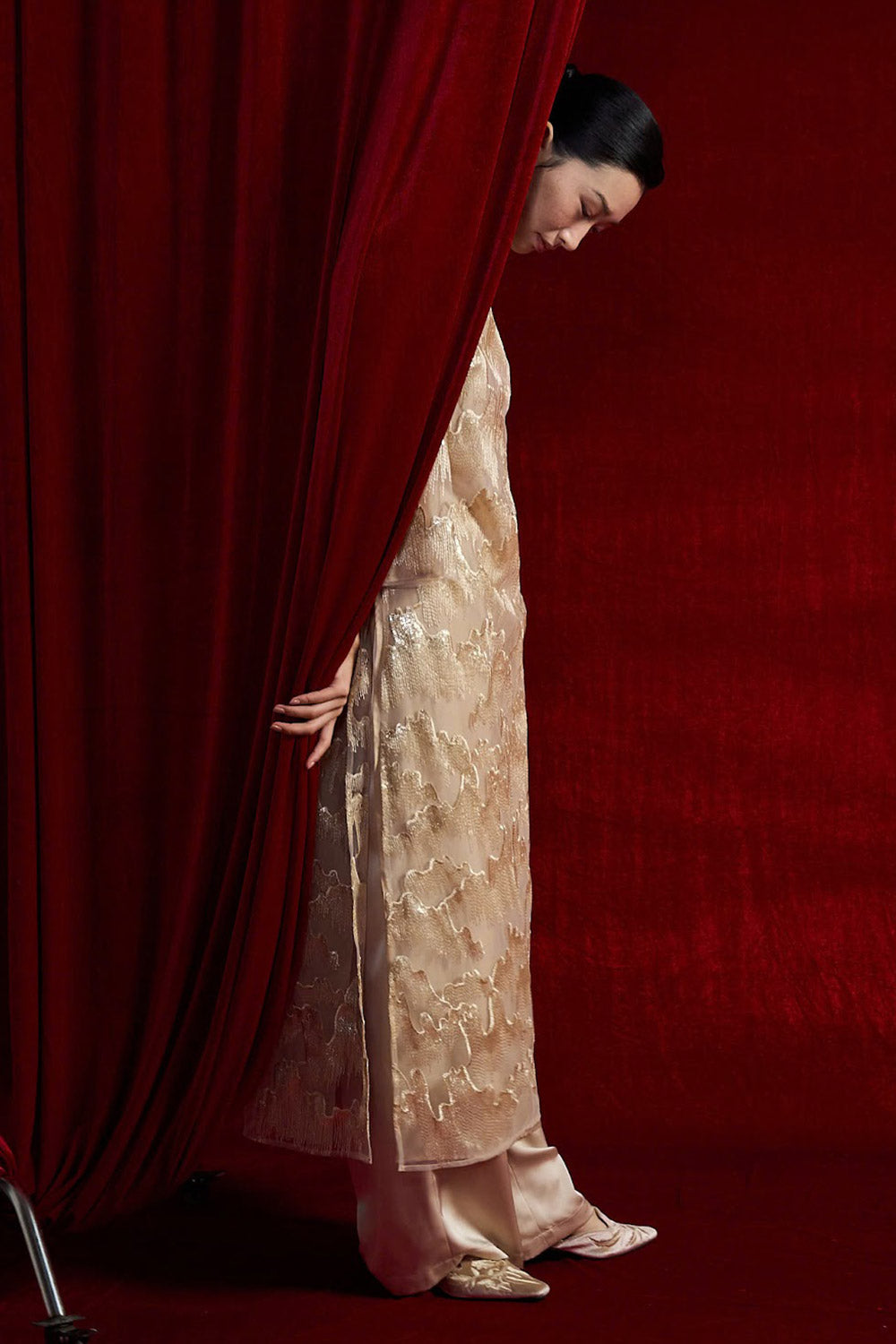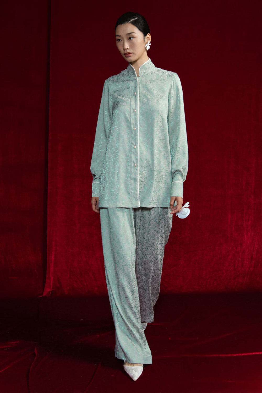 Cam Vien Straight Wide Leg Silk Floor Length Pants