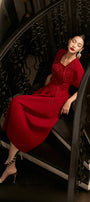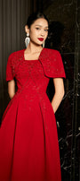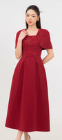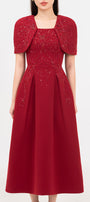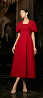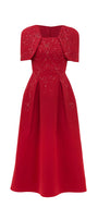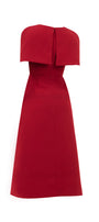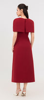 Designed with gored cape sleeves, this linen blend midi dress offers a timeless and elegant look. The gored cape sleeves add a touch of sophistication, making it the perfect choice for any formal occasion. Made with a comfortable and breathable linen blend for ultimate comfort.