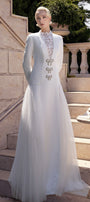Elevate your style with this expert-crafted A-line maxi dress in luxurious taffeta. The elegant V-neck and regular sleeves are accented by refined button embellishments. Ideal for weddings, formal dinners, or upscale parties.