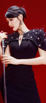 Expertly crafted with a pencil silhouette and chic cape sleeves, this dress is a sophisticated addition to any wardrobe. Its unique design offers a sleek and stylish look, perfect for any formal occasion. Make a statement with this timeless piece.