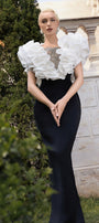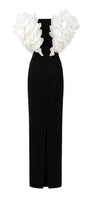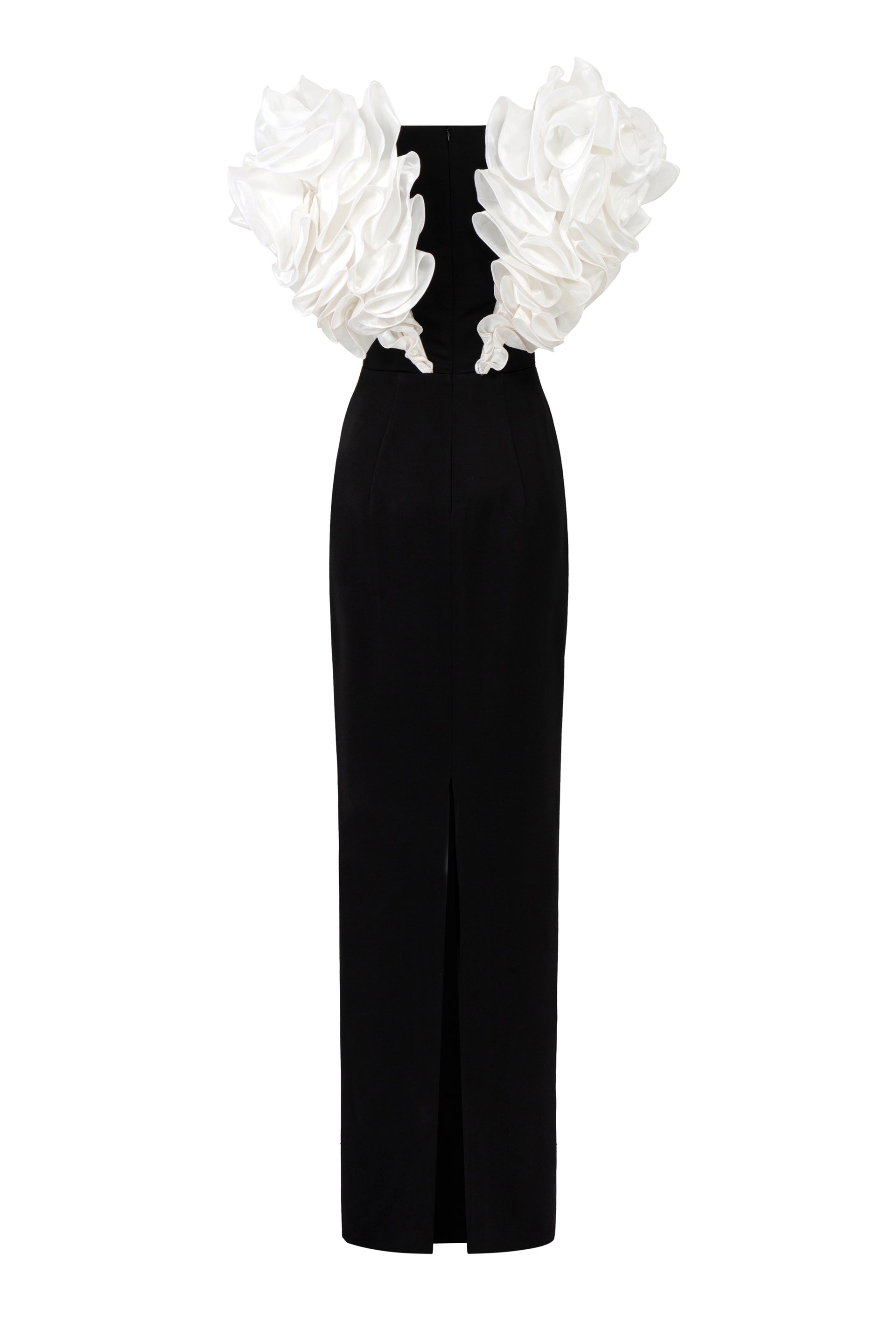 Elevate your wardrobe with this expert-crafted taffeta maxi dress, featuring a sophisticated sheath silhouette and illusion neckline. Regular sleeves and intricate applique embellishments highlight refined elegance. Ideal for formal events, galas, or special celebrations.